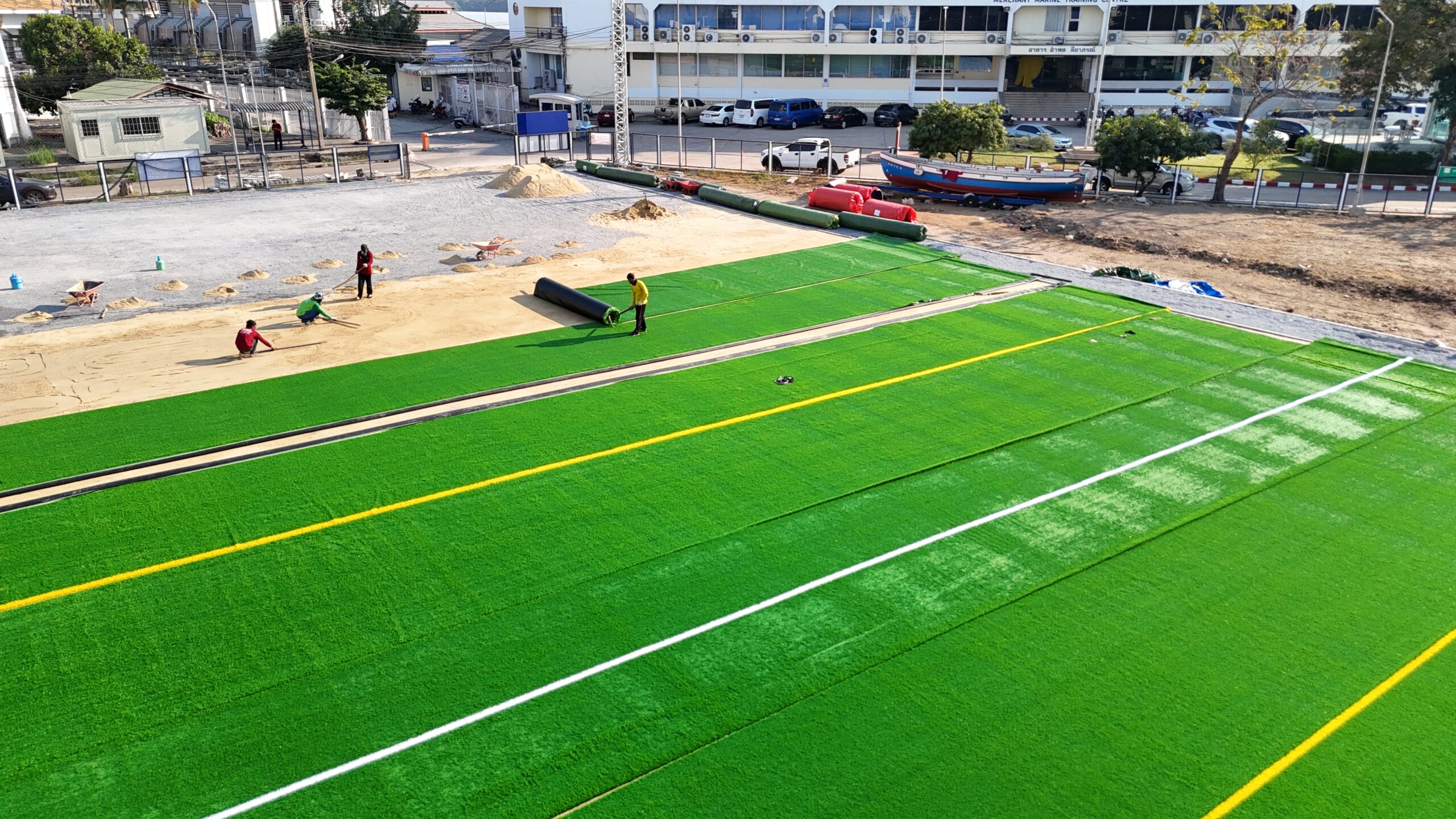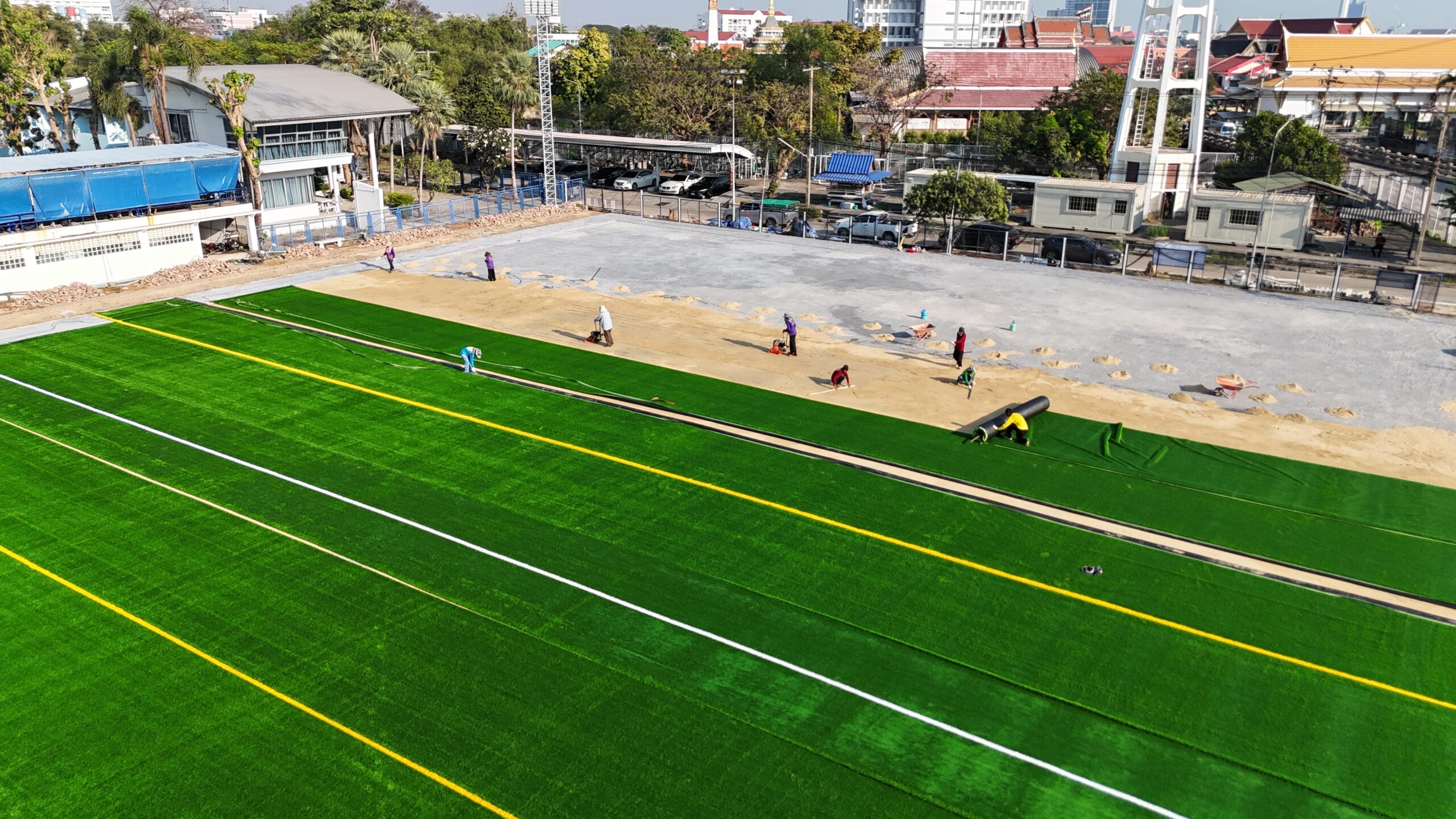 เรามีช่างผู้ชำนาญงาน ดูแลงานก่อสร้าง ติดตั้งและบำรุงรักษาสนามหญ้าเทียมโดยเฉพาะ ก่อนเริ่มงานจะไปดูหน้างานจริง ตรวจสอบพื้นที่ เพื่อวัดขนาด ดูทิศทางการระบายน้ำ จัดวางพื้้นที่องค์ประกอบต่างๆ อย่างละเอียด เพื่อป้องกันปัญหาที่อาจเกิดขึ้นได้ระหว่างการทำงาน ทีมสำรวจออกแบบจะประสานงานร่วมกับทีมติดตั้งเพื่อให้ลูกค้ามั่นใจในคุณภาพของงานระดับมืออาชีพ ที่ดำเนินการตอบสนองความต้องการของลูกค้าให้ดีที่สุด